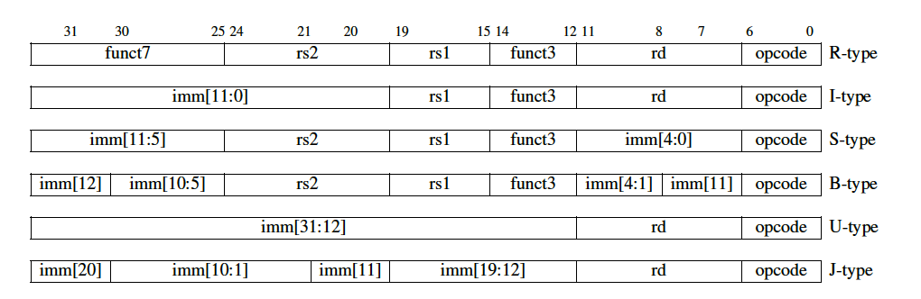 | xori rd, rs1, imm | I | 0x13 | 0x4 | imm | R[rd] = R[rs1] ^ imm |