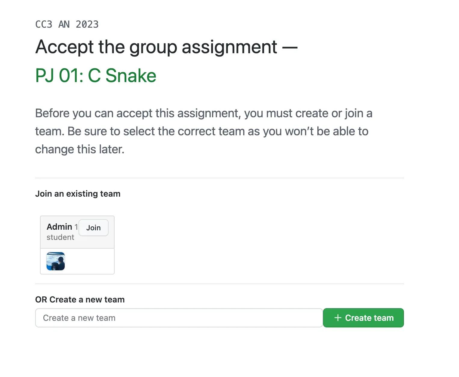 Para comenzar con el proyecto, primero tienen que tener todos los archivos base, estos se encuentran aquí. Tienen permitido trabajar en trios, parejas o de forma individual, por lo que al aceptar la asignación les preguntará si desean crear un grupo nuevo o unirse a uno ya existente. Si crean un grupo nuevo, ingresen un nombre que represente al grupo y que no esté ya en los grupos existentes.